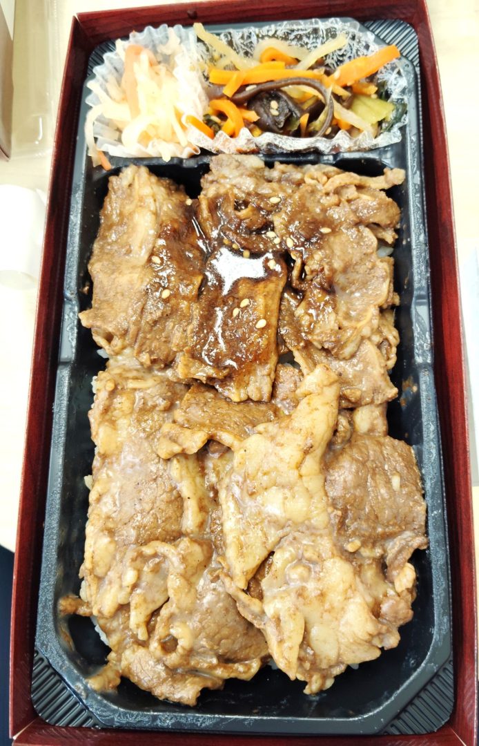 業務後でちょうどお腹がすいてしまうタイミングで牛カルビ弁当だなんて…なんと刺激的でエキサイトでパワフルなエクスペリエンス。集まったメンバーでこれらの弁当を温めるかどうかを決めあぐねてたんですが、どう考えても温めた方が美味しいですよね。しかしながら、電子レンジも一度にメンバー分すべての弁当を温めることはできません。ということで導き出された解…それは弁当を温めないということです。僕もこれまで、数々の弁当を温めずに食べてきた経験があります。でもそれは味を惜しむ以上に手間をかけることを拒否したということ。では今回も?それは否。僕はただ流されただけ。温めずとも食すという英断、勇断を下したメンバーに。ぶっちゃけ全然温めなくても美味しかったです。口内の熱で肉の油が溶かしつつ、咀嚼する。これは豚肉ではなく、牛だからこその美味…。感謝…。
